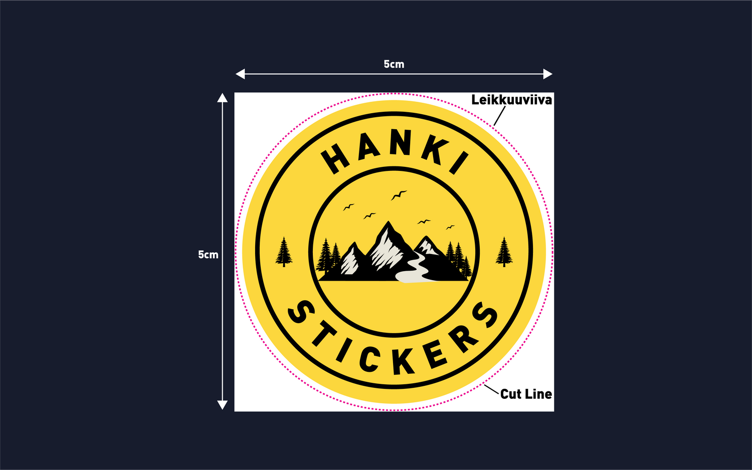 Muotoleikattu tarra tarkoittaa, että tarra leikataan juuri designisi muotoon – ei pelkkä neliö tai suorakaide. Esimerkiksi logon, hahmon tai tekstin ääriviivat voidaan seurata tarkasti, jolloin tarra näyttää paljon mielenkiintoisemmalta ja “valmiilta tuotteelta”.