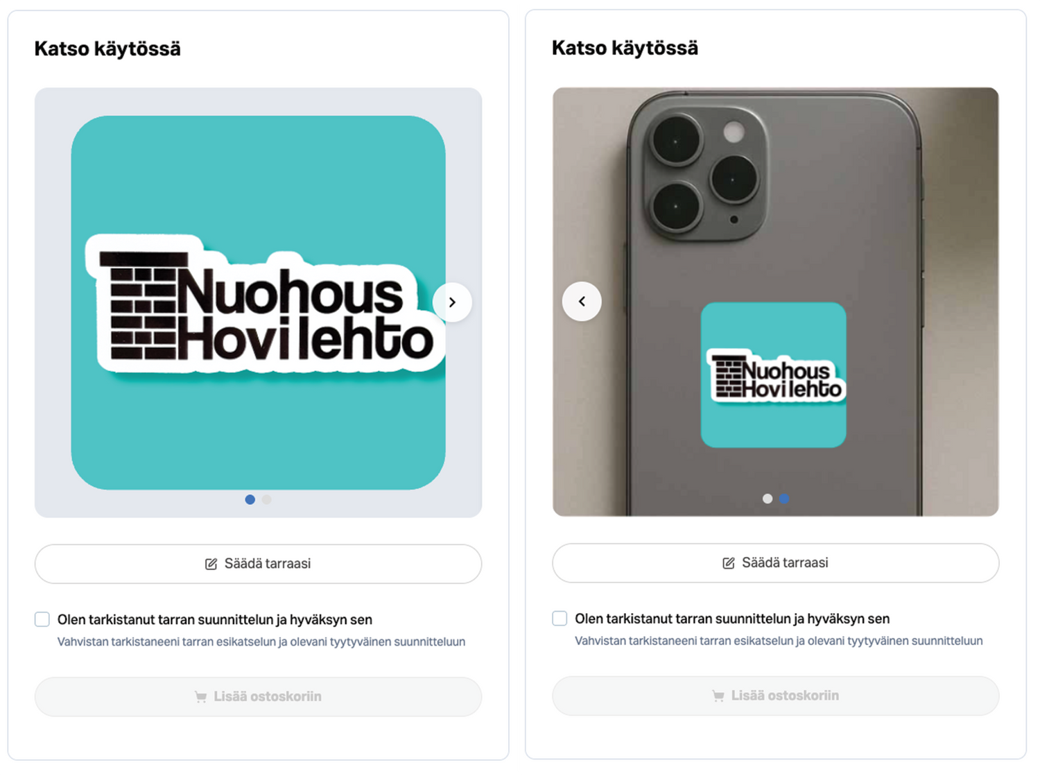 Tarrat kestävät käyttöä, näyttävät hyvältä ja tuntuvat “oikeilta” tarratuotteilta, ei halvalta paperilta.